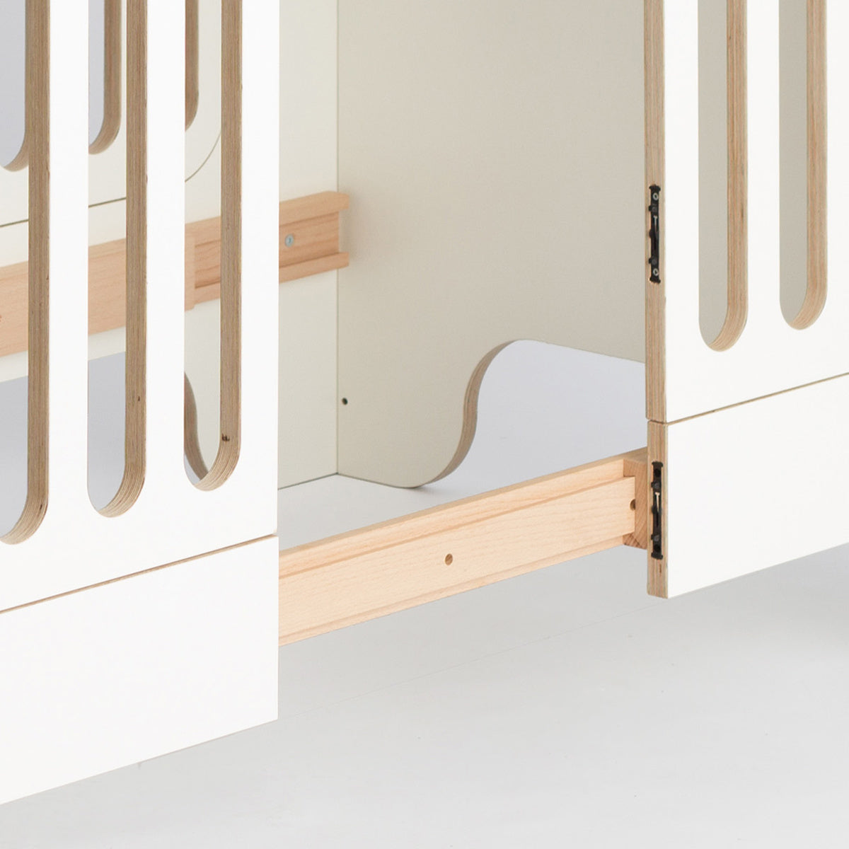 Mithilfe unserer massiven Holzleiste aus Buche kann unser Babybett zweimal verlängert und zum Kinderbett und Juniorbett wird bis zu einer Länge von 160 cm.